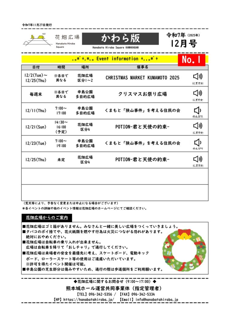 2025年12月の花畑広場かわら版を掲載いたします。